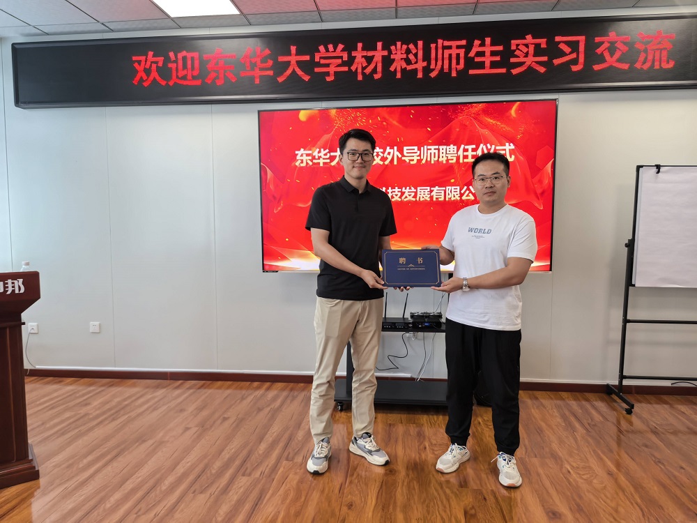 及向潘鹏飞、王少鹏颁发了《东华大学本科生校外导师聘书》。